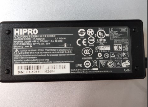 Adapter 19V 3.42A HIPRO HP-A0652R3B Connector Size 5.5mm x 1.7mm