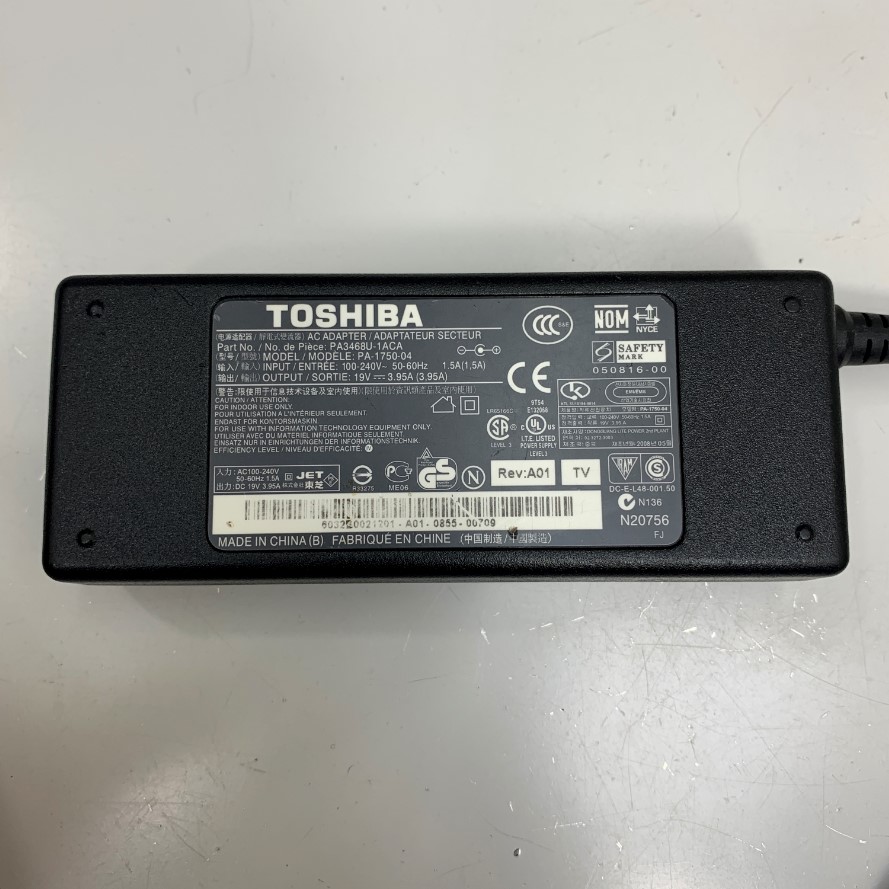 Adapter 19V 3.95A 75W Toshiba PA3468U-1ACA Connector Tip Size 5.5mm x 2.5mm For Laptop Toshiba