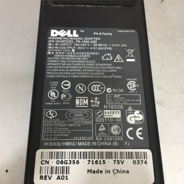 Adapter 20V 4.51A DELL PA-1900-05D OEM Connector Size 3 Pin