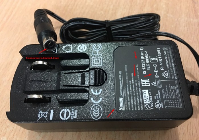 Nguồn điện cấp cho thiết bị: DC Connector Size 6.0mm x 4.0mm