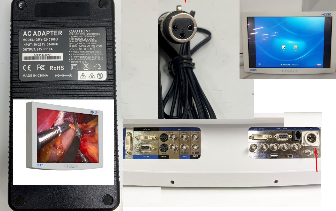 Adapter 24V 10A 240W GMY Connector Tip Size XLR Jack Canon 3 Pin Female For Màn Hình Phòng Mổ Và Nội Soi NDS SC-WU26-A1511 90X0515-F 9426L 26" LED Endoscopy Monitor