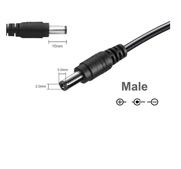 Nguồn điện cấp cho thiết bị: DC Connector Size 5.5mm x 2.5mm dài 1M
