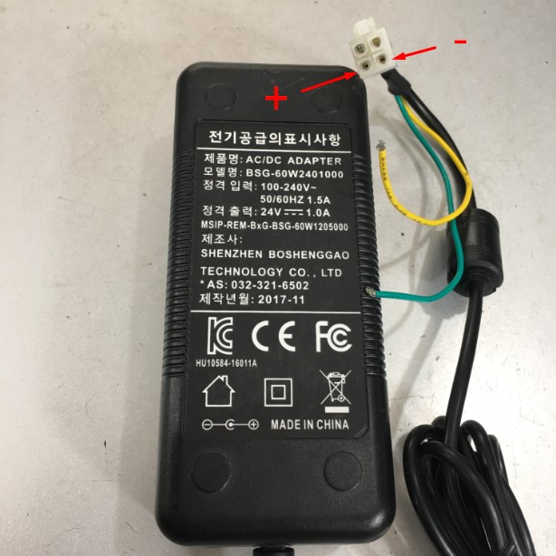 Adapter 24V 1A 24W SHENZHEN BSG-60W2401000 Connector Size 4 Pin ATX Molex For South Korea SUNJE HI TEK ION Nozzle SPN 11/SPN 12S