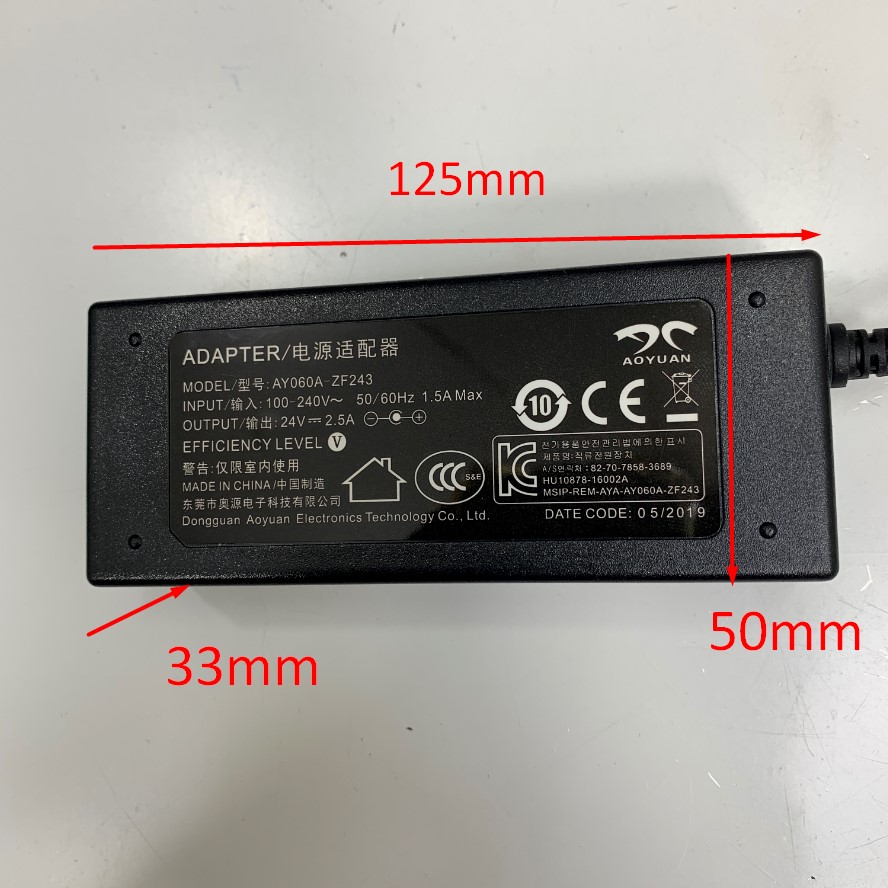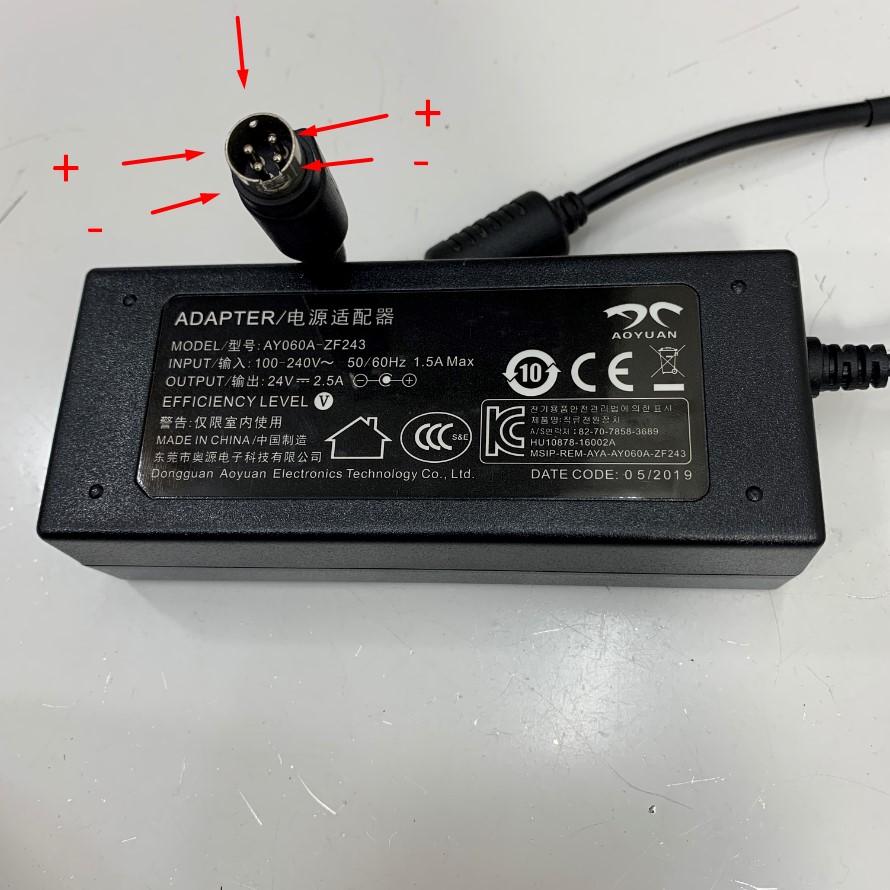 Adapter 24V 2.5A 60W AOYUAN Connector Tip Size 4 Pin Mini Din 10mm Plug