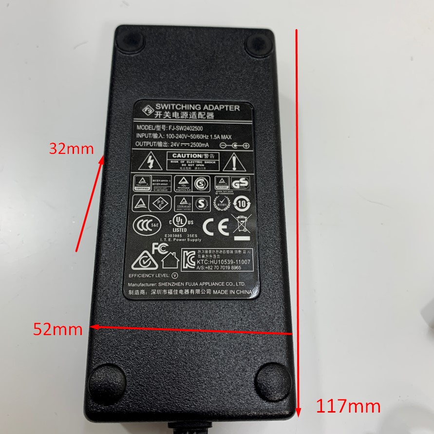 Nguồn điện cấp cho thiết bị: Connector Size 5.5mm x 2.1mm & 2.5mm dài 1.2M