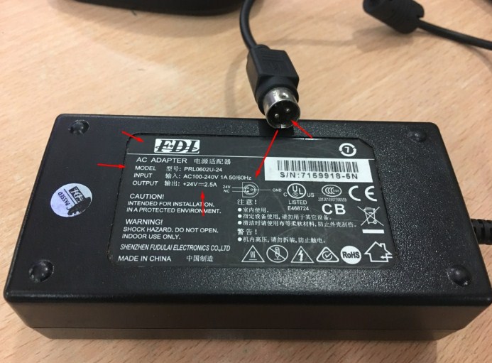 Adapter 24V 2.5A Original FDL PRL0602U-24 For Printer Thermal POS Epson ARGOX Appostar Connector Size 3Pin 10mm Mini Din