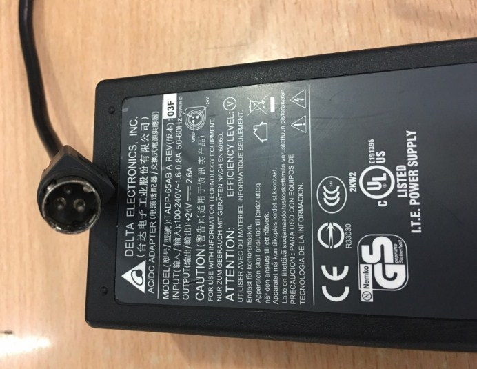 Adapter 24V 2.6A Original Delta Electronics TADP-65AB A Connector Size 3Pin 10mm Mini din