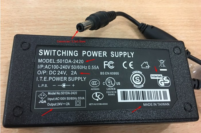Nguồn điện cấp cho thiết bị: DC Connector Size 5.5mmx2.5mm