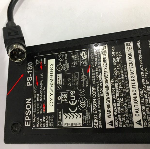 Adapter 24V 2A 48W Original EPSON PS-180 M59A For Máy In Hóa Đơn Epson TM-T88III Connector 3Pin Mini Din 10mm