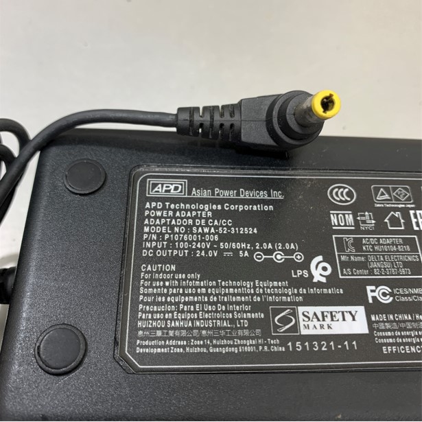 Adapter 24V 5A 120W APD SAWA-52-312524 IEC C14 Connector Size 5.5mm x 2.5mm