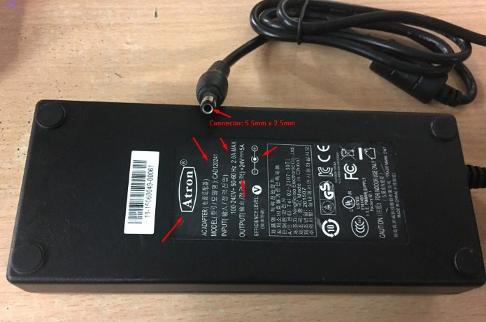 Nguồn điện cấp cho thiết bị: DC Connector Size 5.5mm x2.5mm