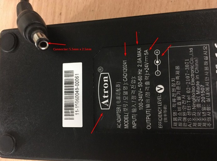 Adapter 24V 5A 120W Atron CAD120241 For máy bắn keo tự động Dispenses AD3300C Connector Size 5.5mm x 2.5mm