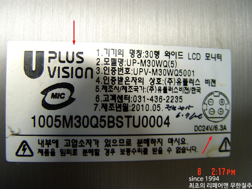 대구광역시에서 유플러스비젼 30인치형 LCD 모니터 수리 입고, 모델: UP-M30WQ 전원 고장 발생!! 대구 LCD 모니터 수리 전문점 세양정보