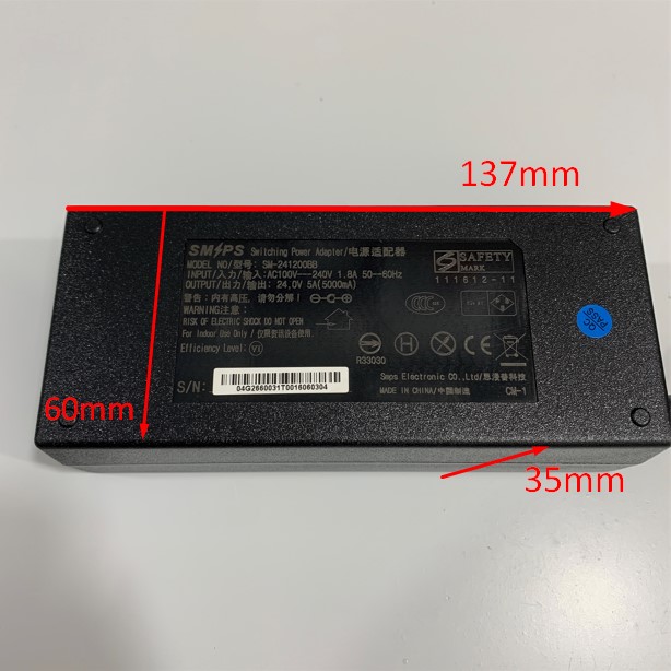 Adapter 24V 5A 120W SMPS SM-241200BB IEC C14 Connector Size 4 Pin Mini Din 10mm