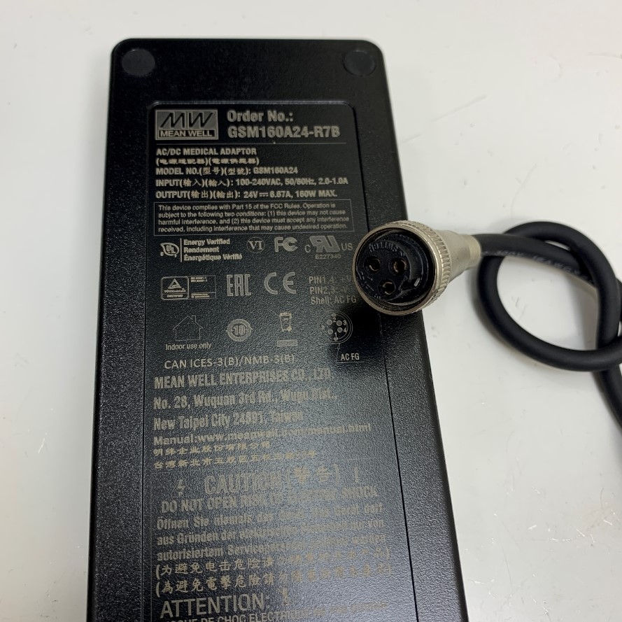 Adapter 24V 6.67A 160W Mean Well Connector Size Switchcraft 3 Pin Female Circular OEM NDS Power Supply MW155RA2400F02 For Màn Hình Phẫu Thuật Nội Soi NDS Radiance Surgical Display Monitor