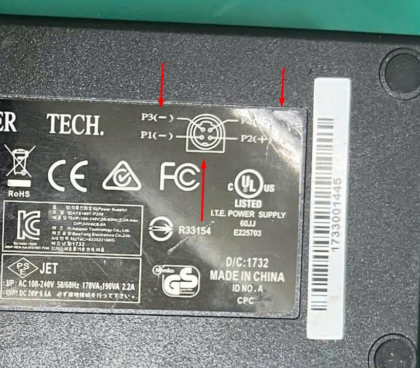 Cắn cứ vào sạc đi theo thiết bị TECH ATS160T-P240 24V 6.5 160W Connector Tip Size 4 Pin Mini Din 10mm Plug