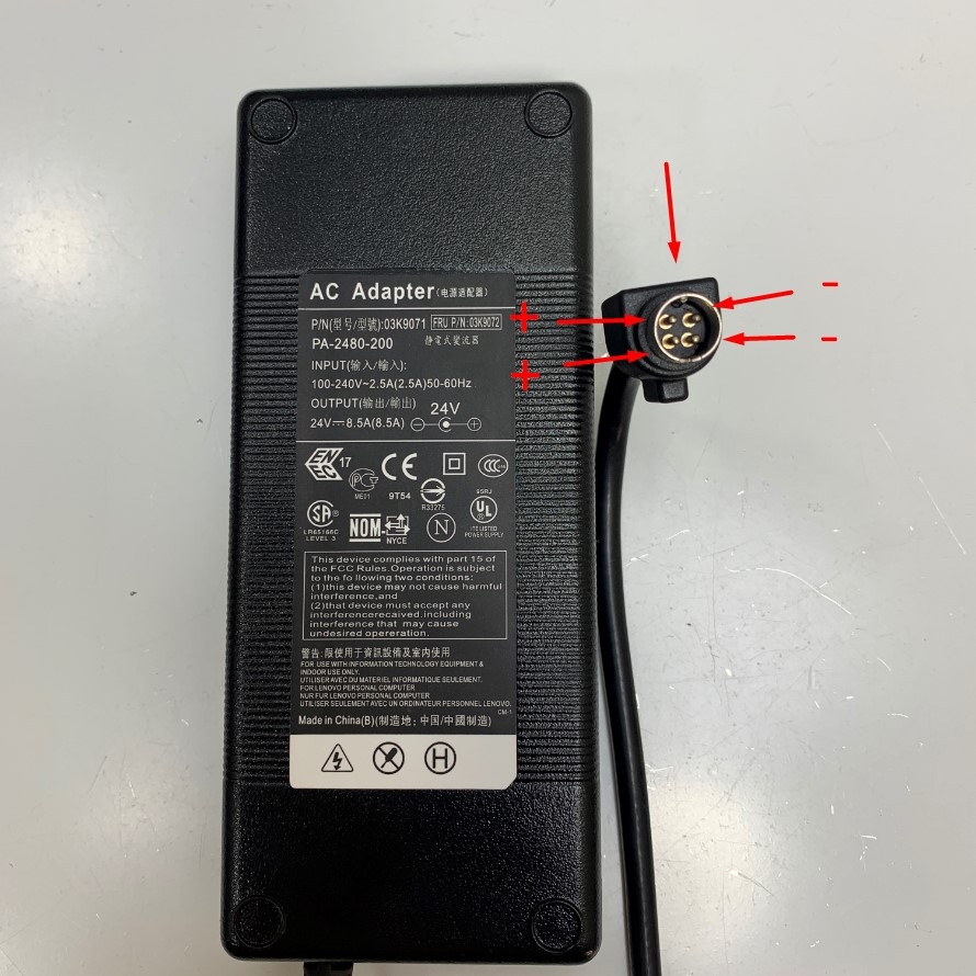 Adapter 24V 8.5A PA-2480-200 Connector Size 4 Pin Mini Din 10mm For UPLUS VISION UP-M30WQ Monitor