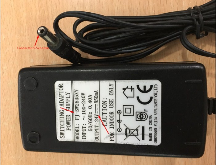 Adapter 24V 850mA SHENZHEN FUJIA FJ-SW2545XY Connector Size 5.5mm x 2.1mm