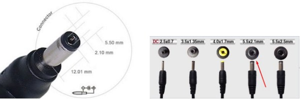Nguồn điện cấp cho thiết bị: DC Connector Size 5.5mm x 2.1mm