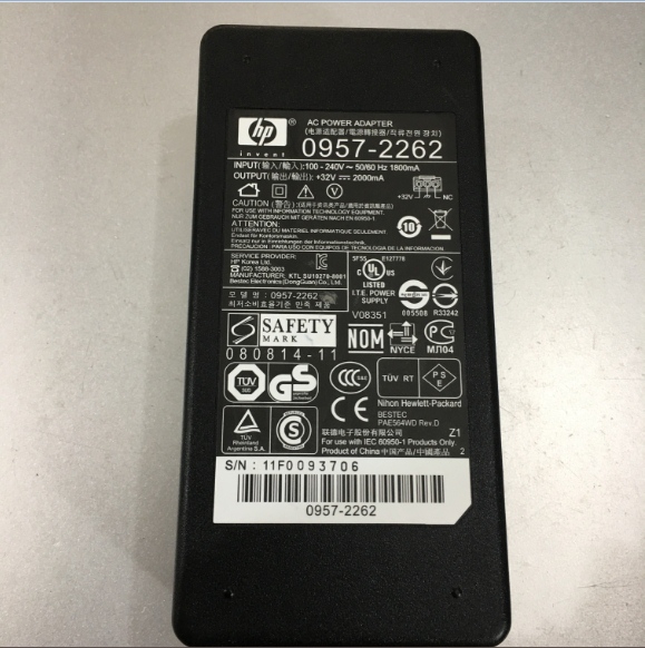 Adapter 32V 2000mAh HP 0957-2262 For HP ScanJet Enterprise Flow 5000 S4 Sheet-feed Scanner Connector Size 3PIN