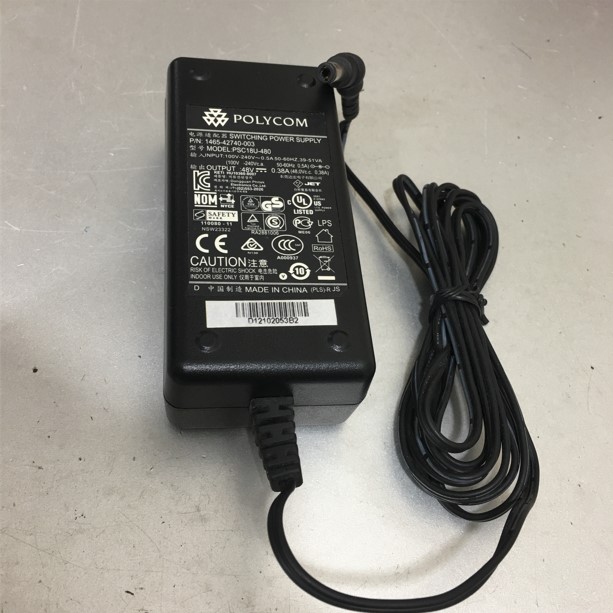 Adapter 48V 0.38A Polycom 1465-42740-003 For Polycom VVX 400 Series Phones Connector Size 5.5mm x 2.1mm