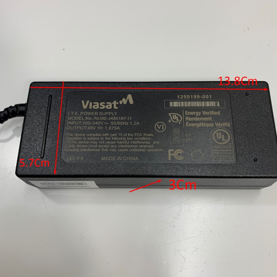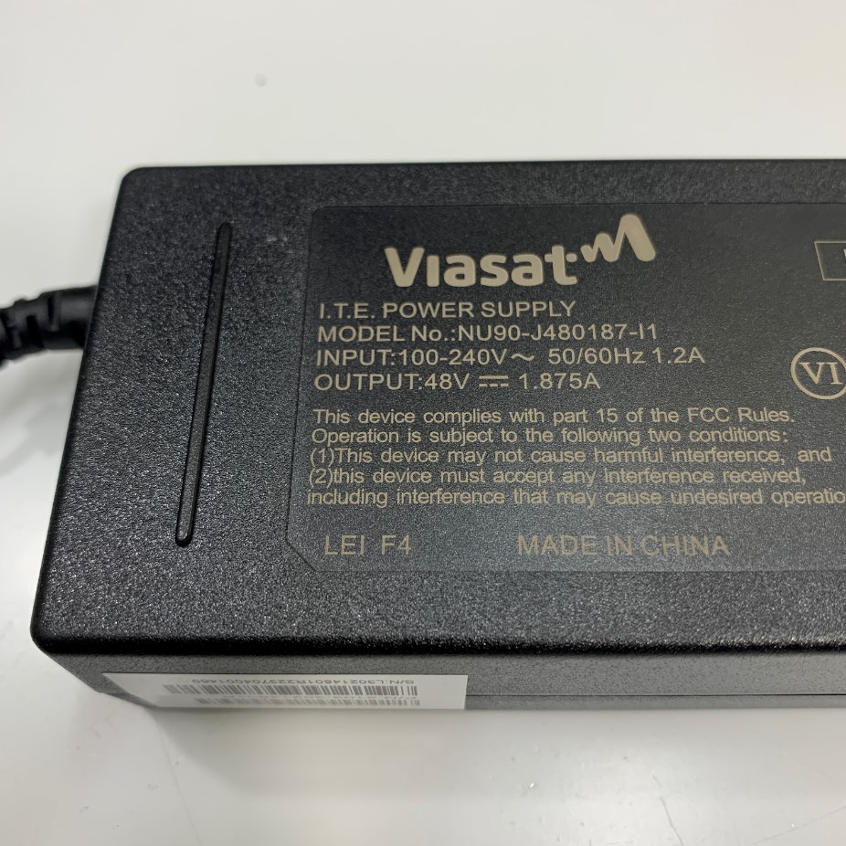 Adapter 48V 1.875A 90W VIASAT NU90-J480187-I1 Connector Size Molex 2 Pin For ViaSat RG1000 Data Modem Power Supply