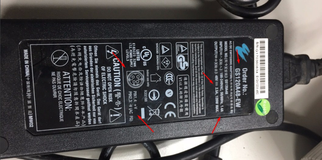 Điện áp đầu ra: 48V 2.5A 4P Mini Din 10mm