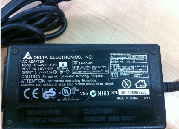 Adapter 5.1V 3A 15W DELTA Electronics WLAN Power Supply ADP-15KB Connector Size 5.5mm x 2.5mm