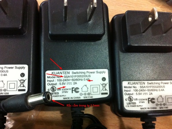Nguồn điện cấp cho thiết bị: DC Connector Size 5.5x2.5mm