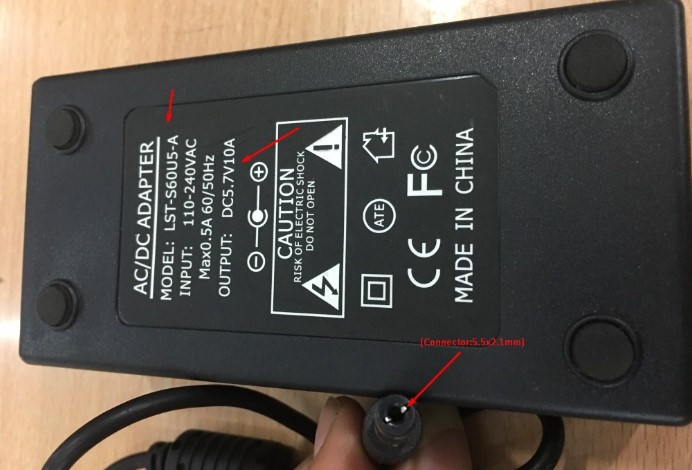 Adapter 5.7V 10A LST-S60U5-A Connector Size 5.5mm x 2.1mm