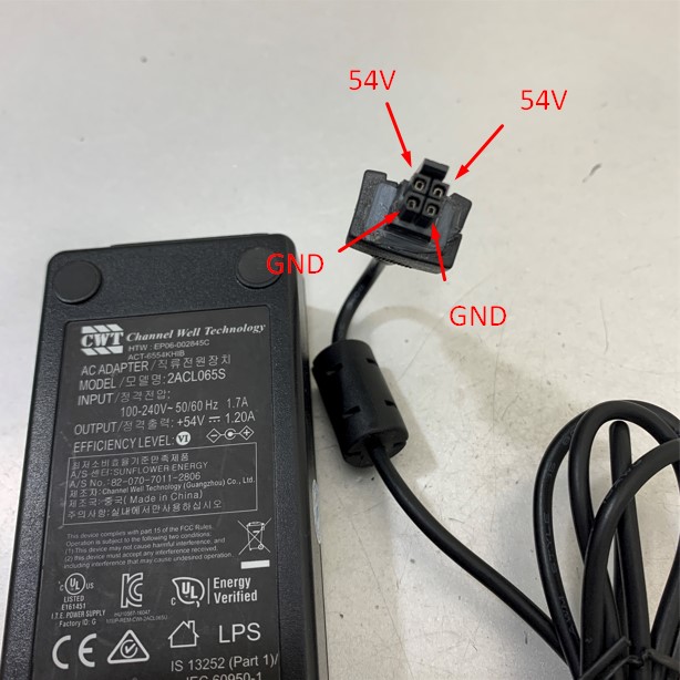 Adapter 54V 1.2A 65W CWT Connector Size Molex 4 Pin