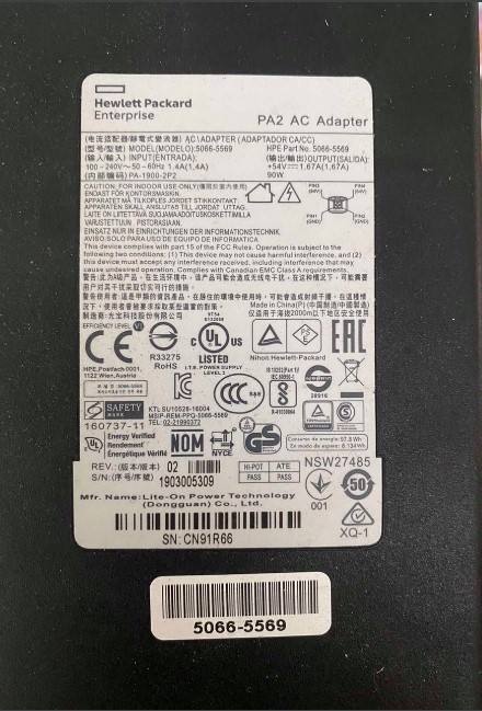 Adapter 54V 1.67A 90W HPE PA-1900-2P2 5066-5569 Connector Size Molex 4 Pin