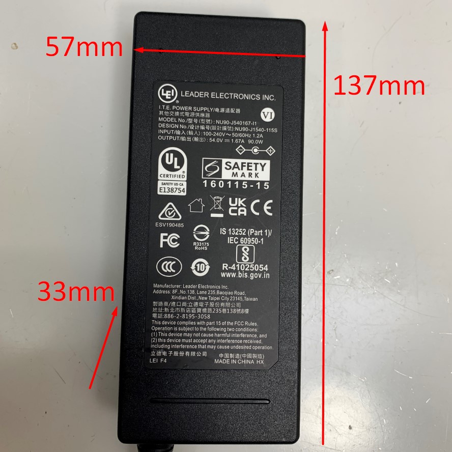 Loại sản phẩm: Adapter DC 54V 1.67A
