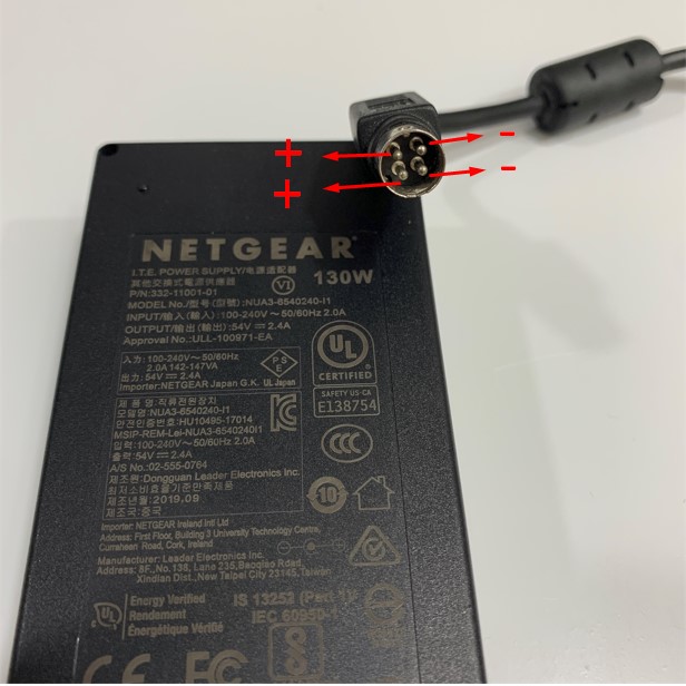 Adapter 54V 2.4A 130W NETGEAR Connector Size 4 Pin Mini Din 10mm For Cisco - SG350-10MP-K9; Cisco - SG250-10P-K9