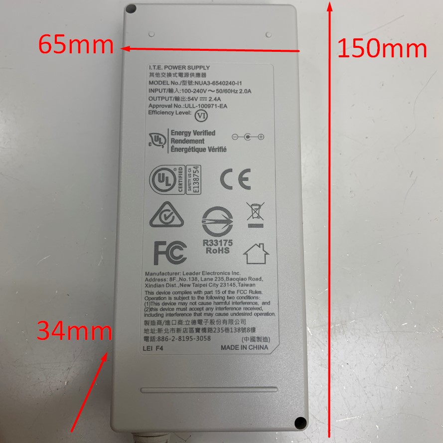 Adapter 54V 2.4A 130W NUA3-6540240-I1 I.T.E Power Supply Connector Tip Size 5.5mm x 2.5mm For PoE Switch Netgear, Cisco Switch