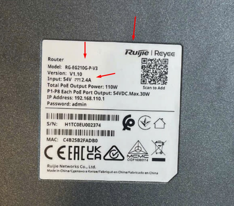 Ruijie RG-EG210G-P-V3 10-Port Gigabit Cloud Managed PoE Power Supply