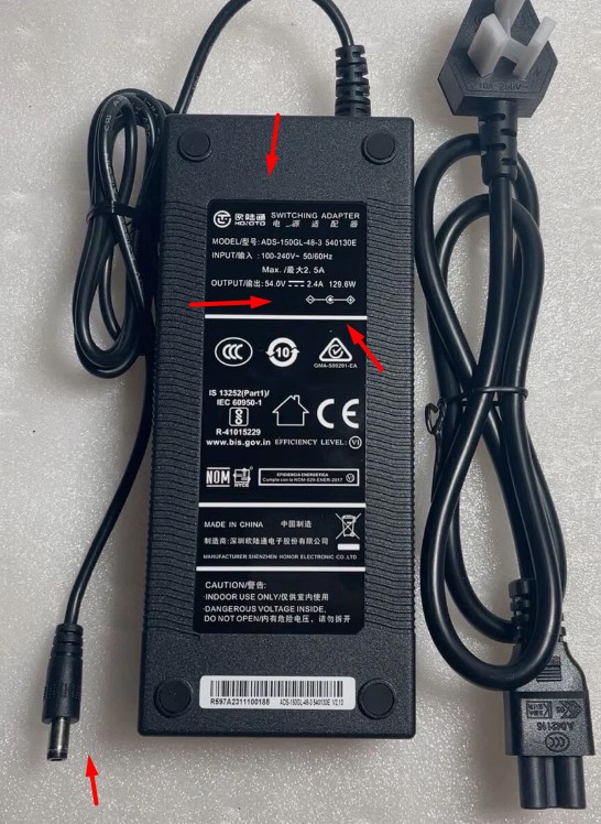 Loại sản phẩm: Adapter DC 54V 2.4A