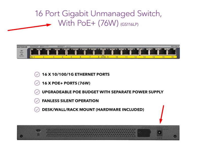 NETGEAR 16-Port Gigabit Ethernet Unmanaged PoE Switch (GS116LP) - with 16 x PoE