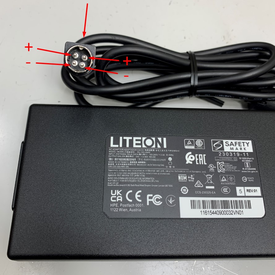 Adapter 54V 3.05A 165W LITEON PA-1161-54 Connector Tip Size 4 Pin Mini Din 10mm Plug Switching Power Supply