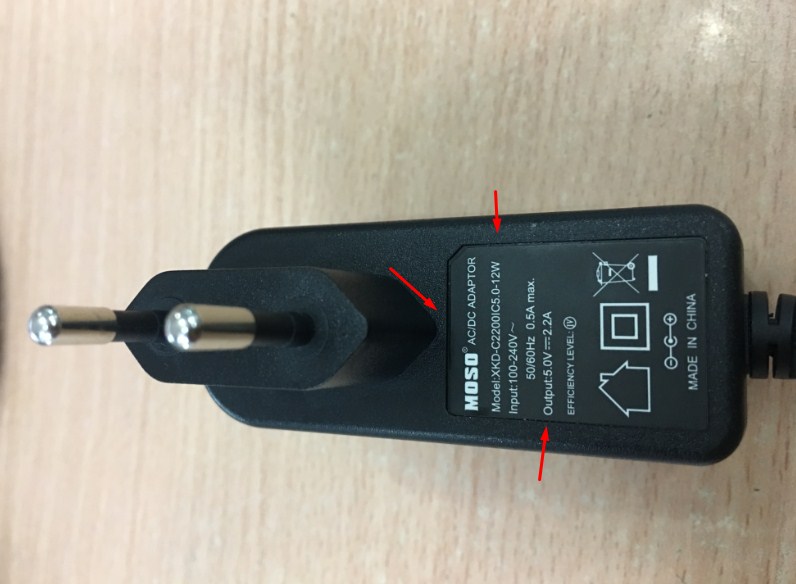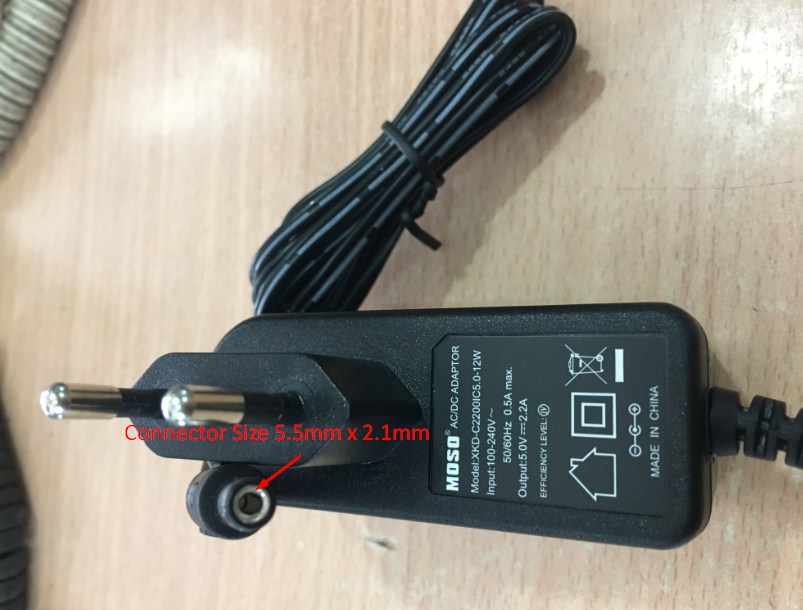 Adapter 5V 2.2A 11W MOSO XKD-C2200IC5.0-12W Connector Size 5.5mm x 2.1mm