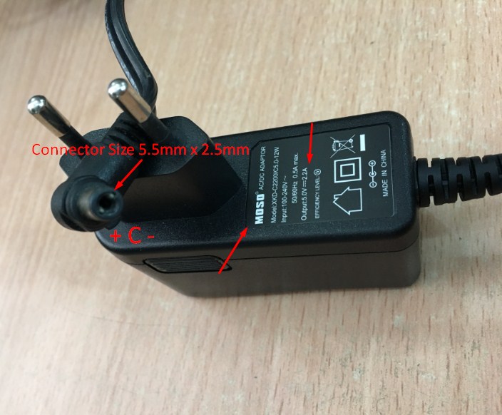 Adapter 5V 2.2A 11W MOSO XKD-C2200IC5.0-12W For Honeywell Xenon 1902G-HD Symbol Barcode Scanner Connector Size 5.5mm x 2.5mm