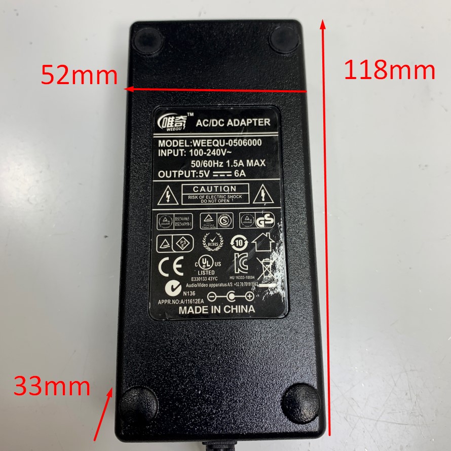 Adapter 5V 6A WEEQU-0506000 Connector Size 5.5mm x 2.5mm