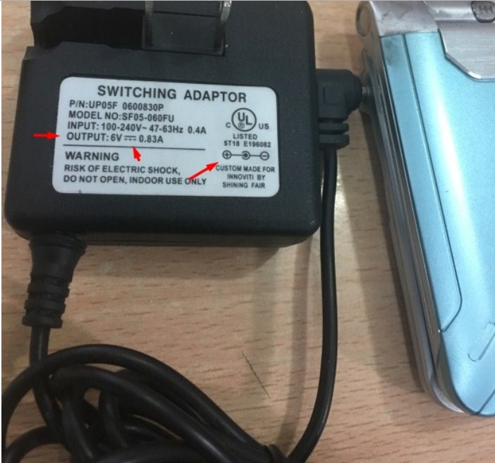 Adapter 6V 0.83A 2.3W INNOVITI For Kim Từ Điển GD6100M Màn Hình Cảm Ứng 3.8 Inch Connector Size 3.5mm x 1.35mm