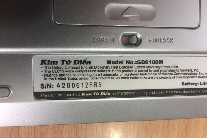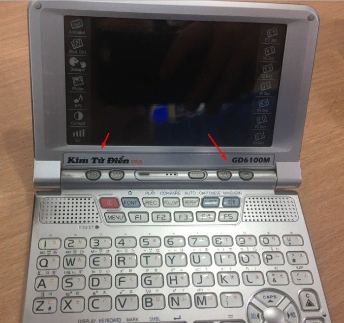 Kim từ điển GD6100M màn hình cảm ứng 3.8 inch có rắc DC kết nối nguồn điện khác với rắc cắm DC thông thường Âm trong, Dương ngoài.