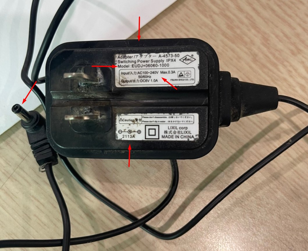 Căn cứ vào sạc theo thiết bị 6V 1A LIXIL EUDJ+06060-1000 Adapter A-4573-50 Switching Power Supply IPX4