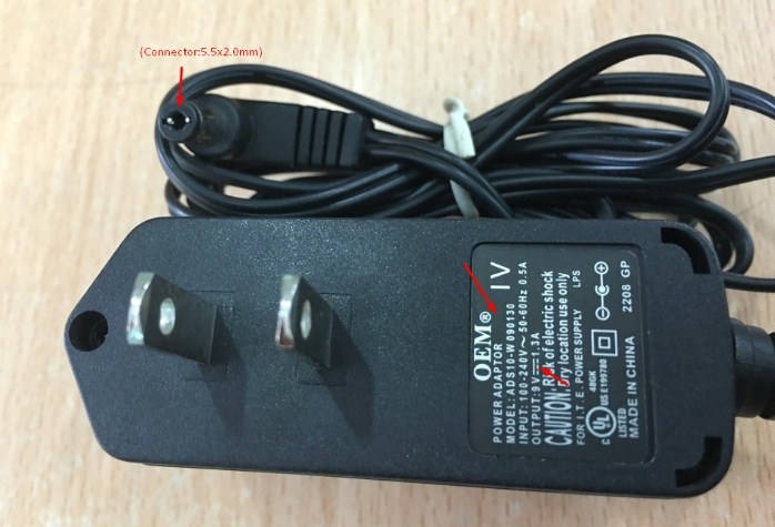 Nguồn điện cấp cho thiết bị: DC Connector Size 5.5x2.0mm2