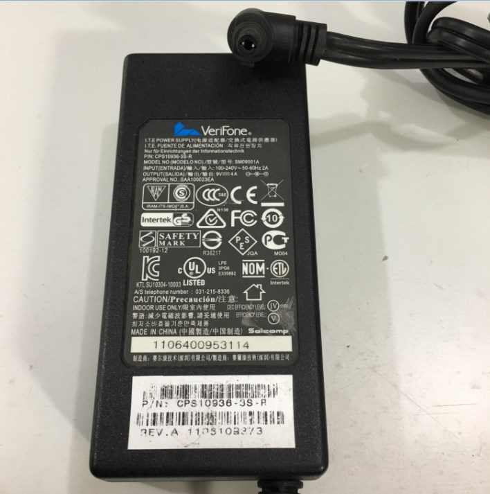 Adapter 9V 4A VeriFon SM09001A CPS10936-3S-R Connector Size 5.5mm x 2.5mm 90 Degree