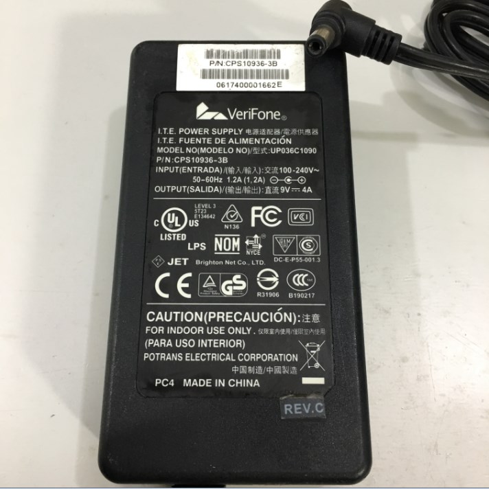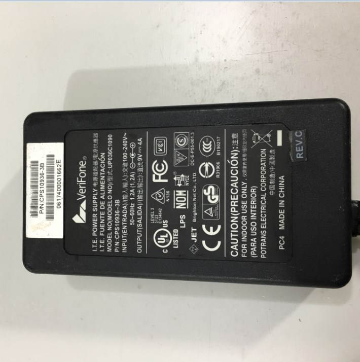 Adapter 9V 4A VeriFone UP036C1090 CPS10936-3B Connector Size 5.5mm x 2.5mm 90 Degree
