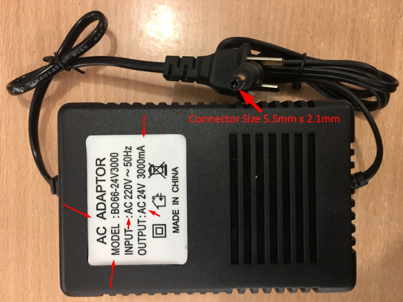 Nguồn điện cấp cho thiết bị: AC Connector Size 5.5mm x 2.1mm