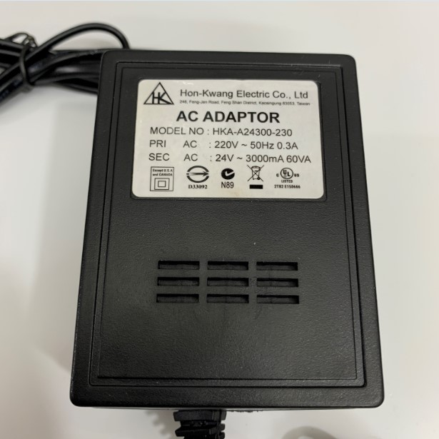 Adapter AC to AC 24V 3A Hon-Kwang HKA-A24300-230 Connector Size 5.5mm x 2.1mm For CCTV Cameras And Camera AHD Speed Dome PTZ Camera Dahua HIKVISION Panasonic